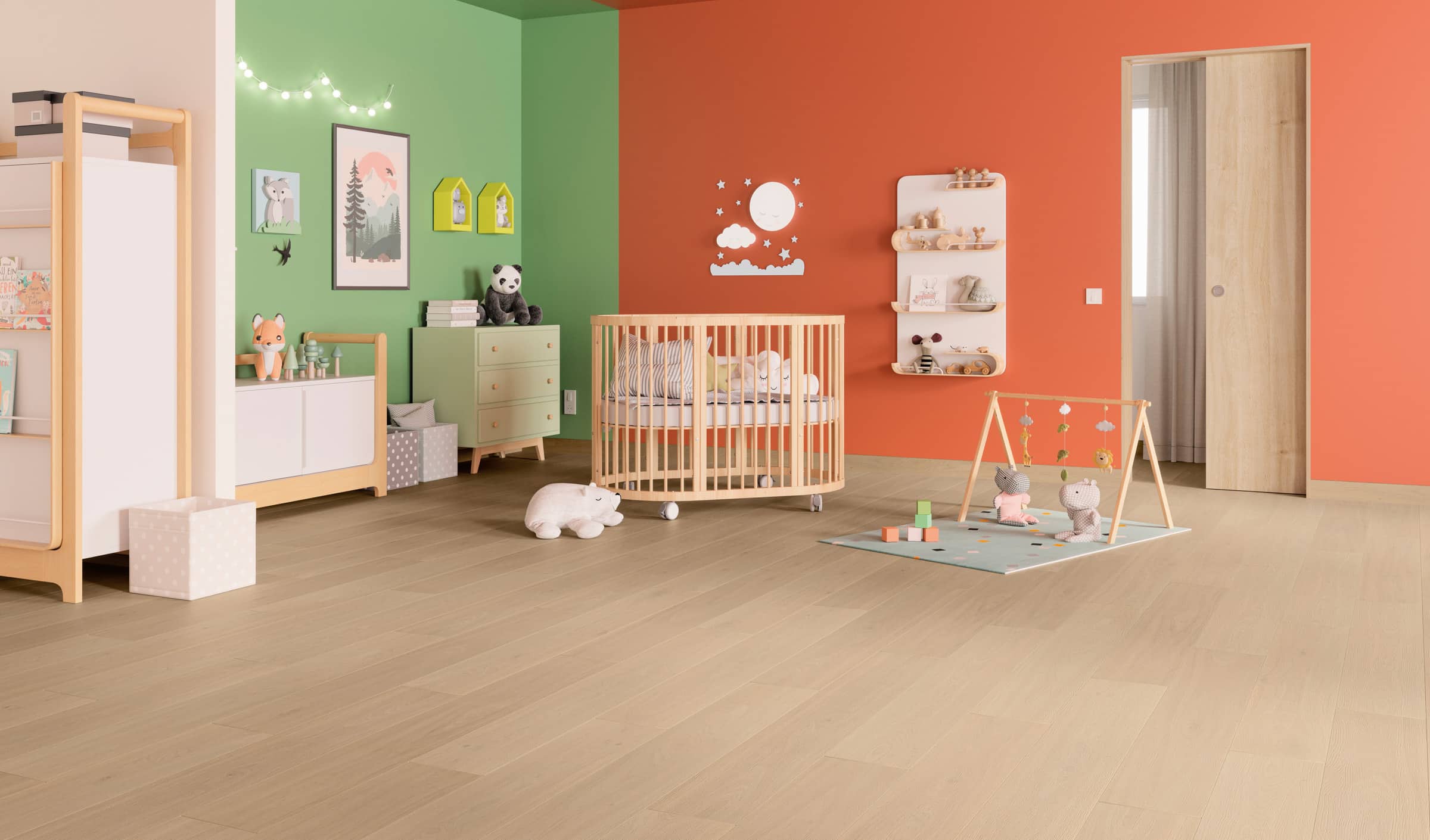 פרקט Finfloor דגם Magari מתאפיין בגוון אלון טבעי עם נגיעות חמימות, המעניק לחלל מראה חם ואותנטי.