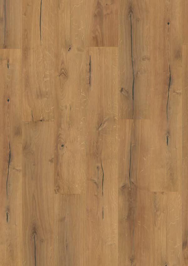 פרקט Finfloor דגם Polka מתאפיין בגוון אלון טבעי עם סדקים וקשרים, המעניקים לחלל מראה חם ואותנטי.