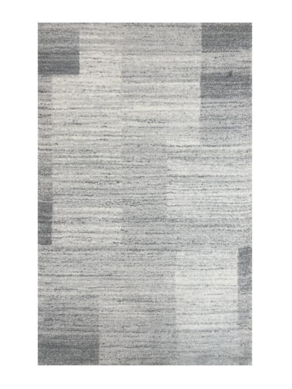 שטיח ביו בעיצוב גיאומטרי מודרני, בגווני אפור בהיר עם נגיעות גרפיט רך.